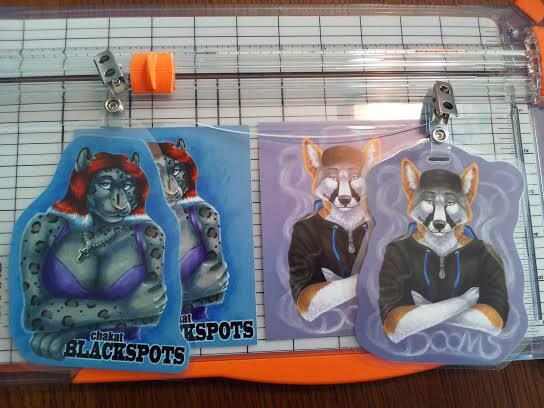 I am offering conbadge preorders in the form of high detail digital badges, traditionally inked badges on colored cardstock with acrylic highlights, and full acrylic badges. The digitally painted badges are $55+ depending on specifics, traditional inked is $25, and traditional acrylic is $45. All badge types come laminated with a clip, and will be ready for pickup at my table in the dealer's den.