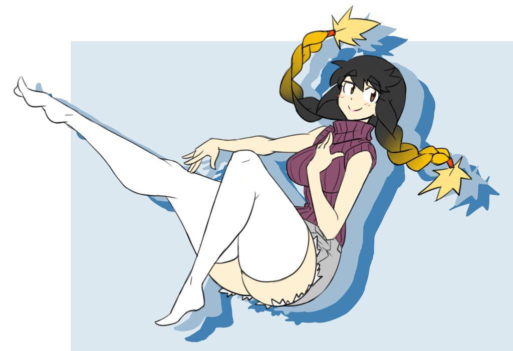 my badger Sunny in Etnas outfit, pose with her spear. Maaaybe a pose like this? https://img4.gelbooru.com//images/6.....387c2ec69.jpeg