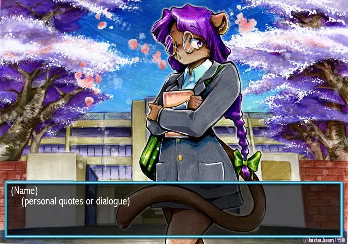 For the next year i will be doing little mini commissions in the theme of a dating game! At the end of the year i will be hoping to use my backgrounds and commissions to make a little dating game spoof with flash. I'll only use commissions that i have done heaps of expressions for, but ill explain that shortly.