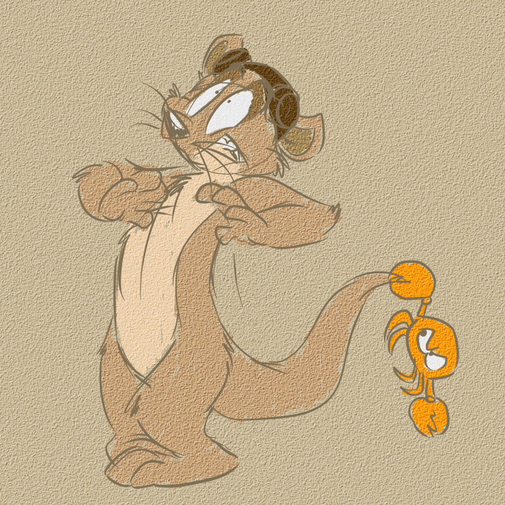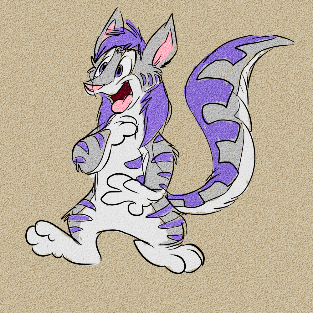 I think dark brown lines would be best for him. :3 Can I suggest that he’s got a crab pinching his tail? Might be quite funny. :P
