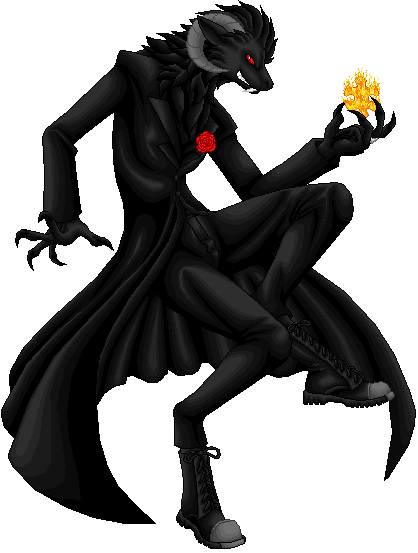 His black outfit: http://www.furaffinity.net/view/5743295 (small yea, Xenomorph did it for me on Magistream) Here's a bigger one, but Xeno mixed up his boots x3: bigger