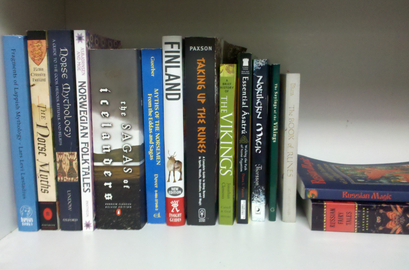 I also think that serving as a base of basic information would be very helpful. Having overviews of different aspects of Asatru, profiles of the deities, and making other such information available in a simple, easy to understand, and friendly manner in one place would be both convenient for those interested in learning more and as a resource for the community. Wooh! That was a really long run-on sentence! But I'd be more than happy to offer my services, shall there be any need of them. I do have a formidable collection of books about mythology and nordic culture (this isn't all of them, not even) and I spend, only gods know how much time studying. The religion with homework indeed!