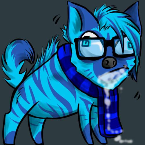 Blouis Is a blue Hipster Aardwolf, so if you could just add emo glasses/hair, scarf and/or PBR can... I don't really have refs of him, but that description covers everything really. But even so there's an ink badge here and a cartoon feral version here