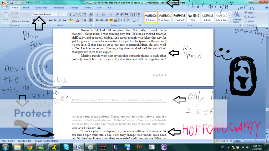 Gotta do it. It's the only way I can put really long stories on FA so people can read it on FA.