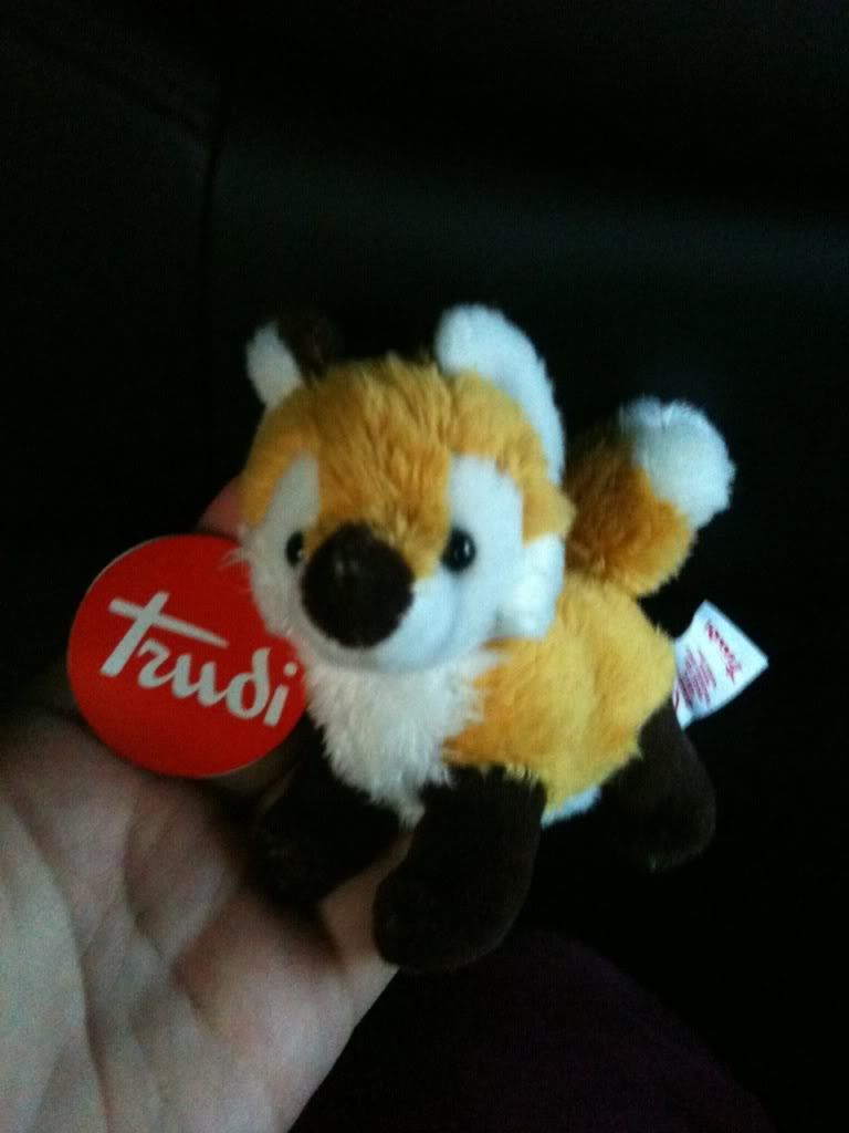The fox is probably around 4 inches long and 3 inches tall, so very cute and mini <3 I bought a few of these while I was here on Vacation (Expensive little bastards lol.. 7 bucks each pretty much. But they soo adorable ;A; and since they are collectible and very well-made, they will go up in value years from now to Trudi collectors)