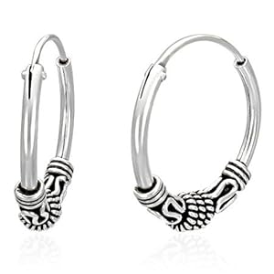 3 earings at the top of his left ear. Silver rings; http://ecx.images-amazon.com/images.....500_AA300_.jpg