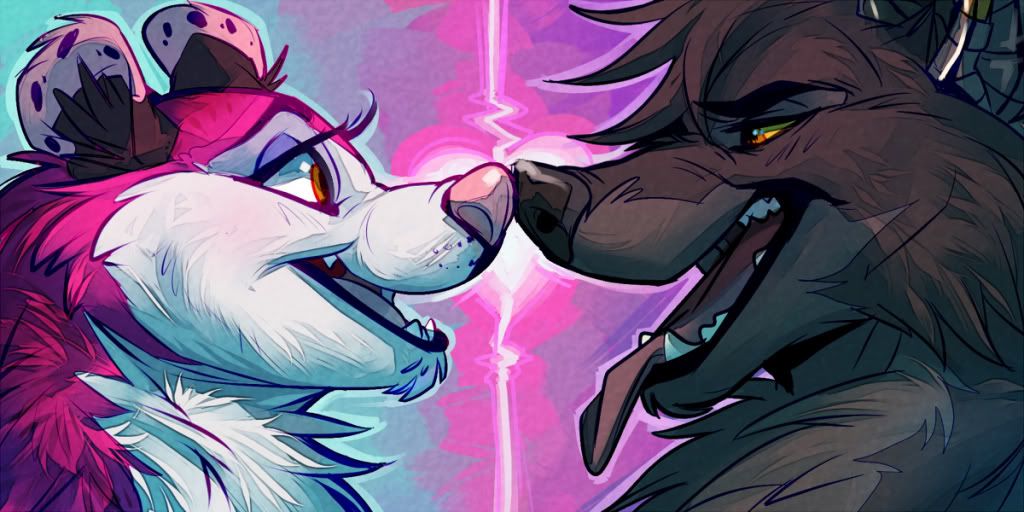 Two completed pictures: http://www.furaffinity.net/view/5273289/ and http://www.furaffinity.net/view/4886185/