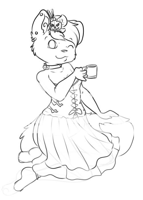 Here is a rough sketch. I'll ink sketch it and give it alittle color once you approve of the WIP <3