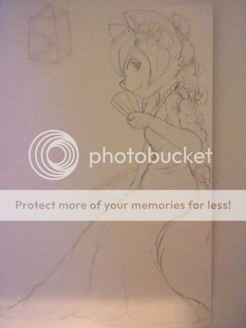 Here is a wip. Sorry its so messy and not a great taken picture of it -w- but there are flowers in her hair if you cant tell. Also that box is supposed to be a paper lantern.