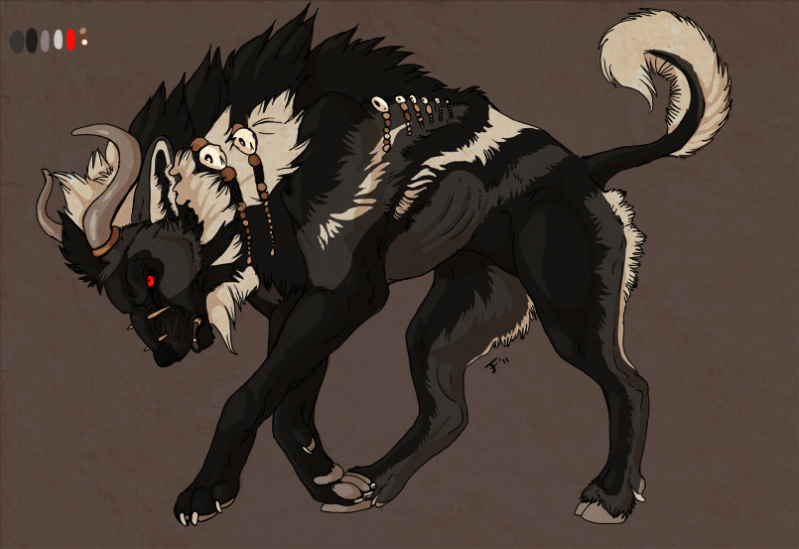 Mabaya, the wildabeest/striped hyena: http://i117.photobucket.com/albums/...../MabayaRef.png