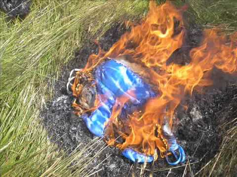 -A G.I. Jimbo half-melted action figure or a painting of a sad crying clown in an iron lung