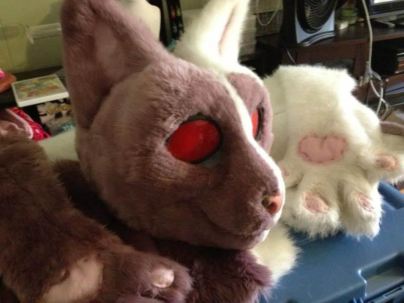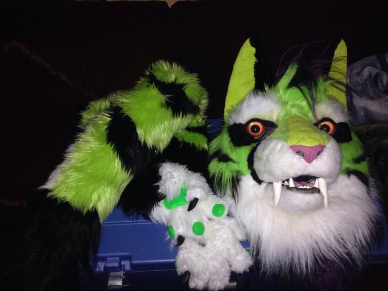 Head fits a 24 Max head. Hand paws leg warmers a tail and enough of the purple fabric to make a foot paw but I have no more white