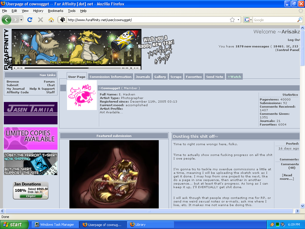 I will ask though that people stop contacting me for RP, or send me weird sexual notes or e-mails, ask me where I live, etc. It makes me not wanna be doing this.