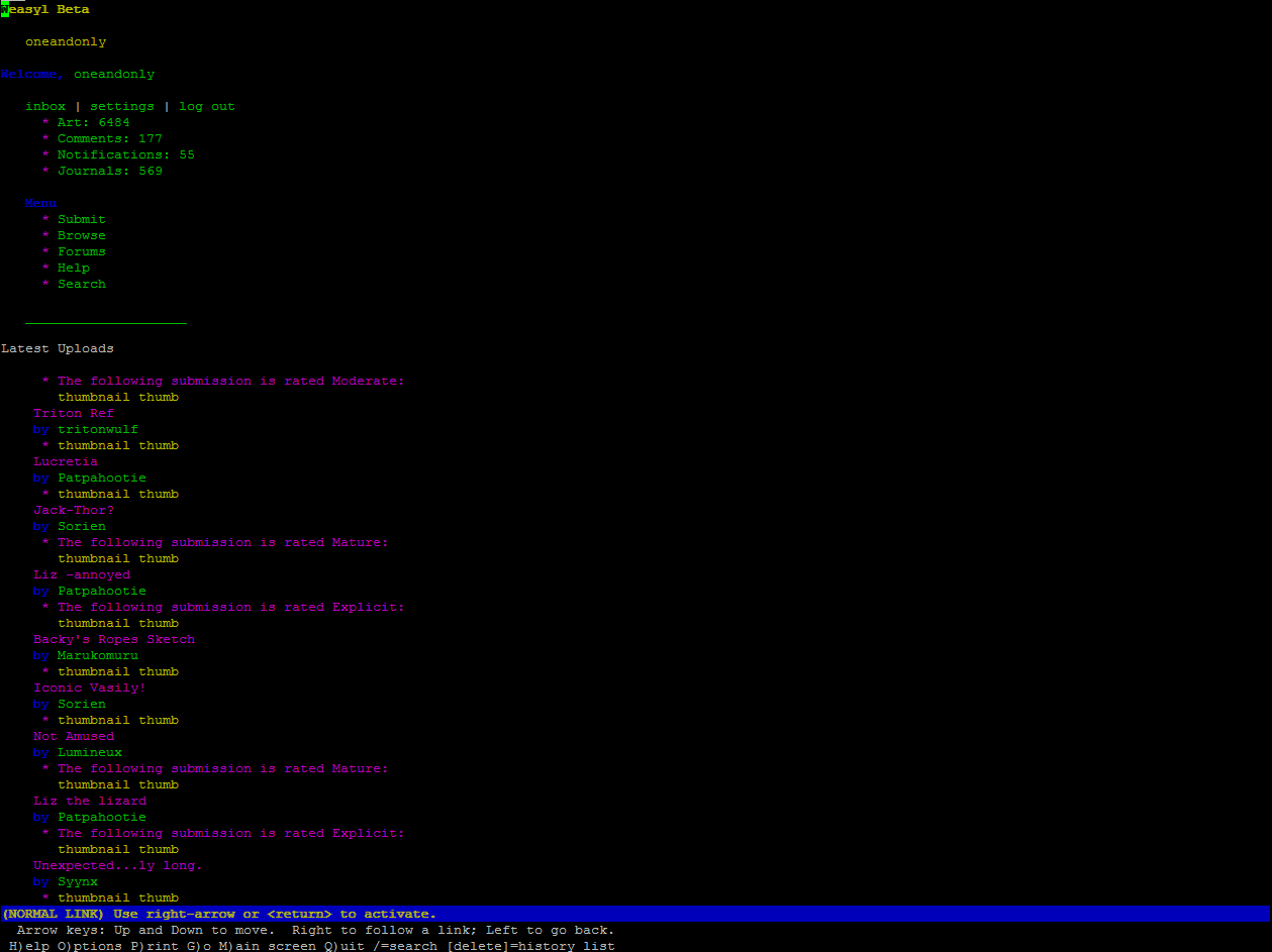 I think the add-on thing was kinda eye roll myself, but the hashtag thing was super annoying. I always copy pasta all my tags, I really am not going to type them all out again for each site. For a while it looked like DA was trying to go for a myspace look, but now I think its more dumblr looking. Now this site is not pretty, but I *LIKE* it. I love simplicity. I love the monocolor feel, which is easy on the eyes but not soft edged and "streamlined" I love that it expects a mouse not a finger.