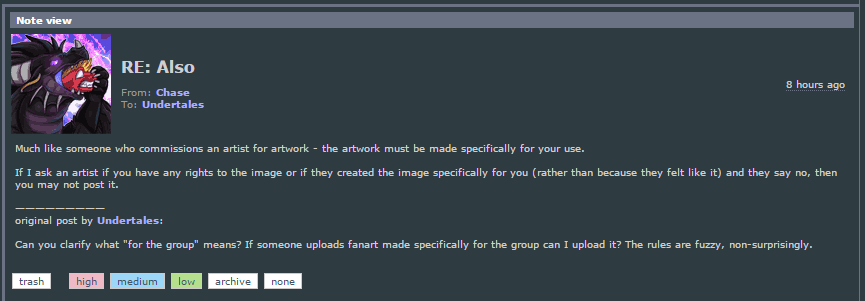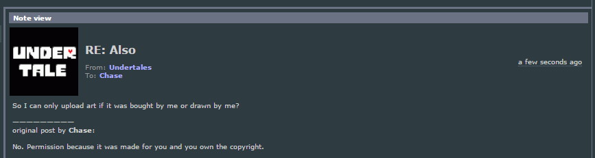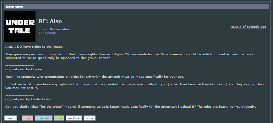 Which means when you upload Undertale fanart for us in the future, just write "Made for the Undertales group" in the submission box if you'd like it uploaded. Since I'm not exactly sure what "for the group" means...