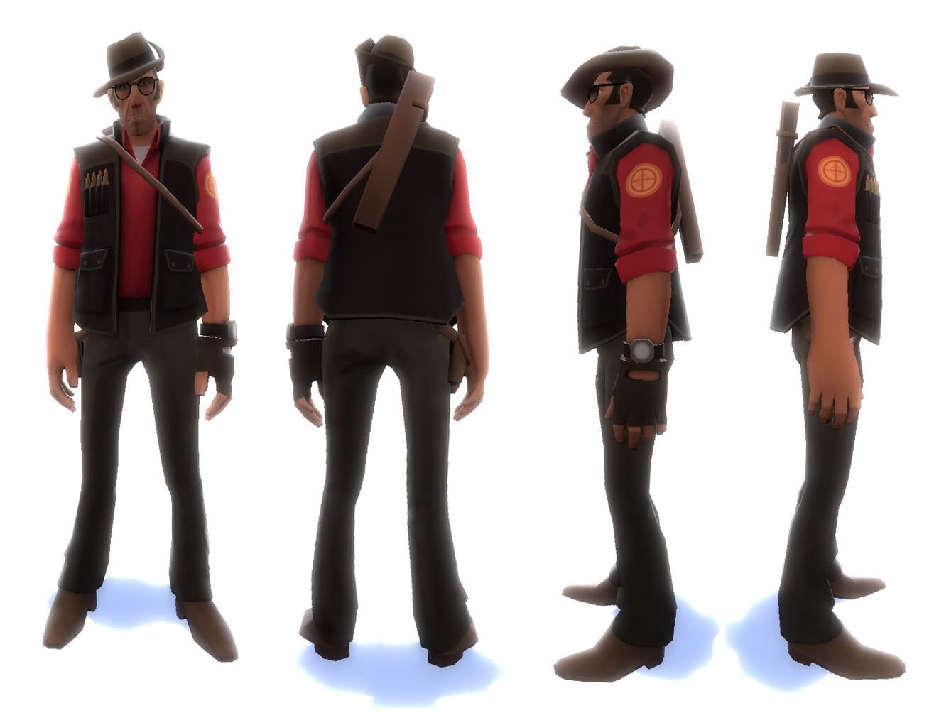 For the hat, I'd try to get one I could put a bit of armature wire inside the rim of, to get the constant Sniper hat bend.