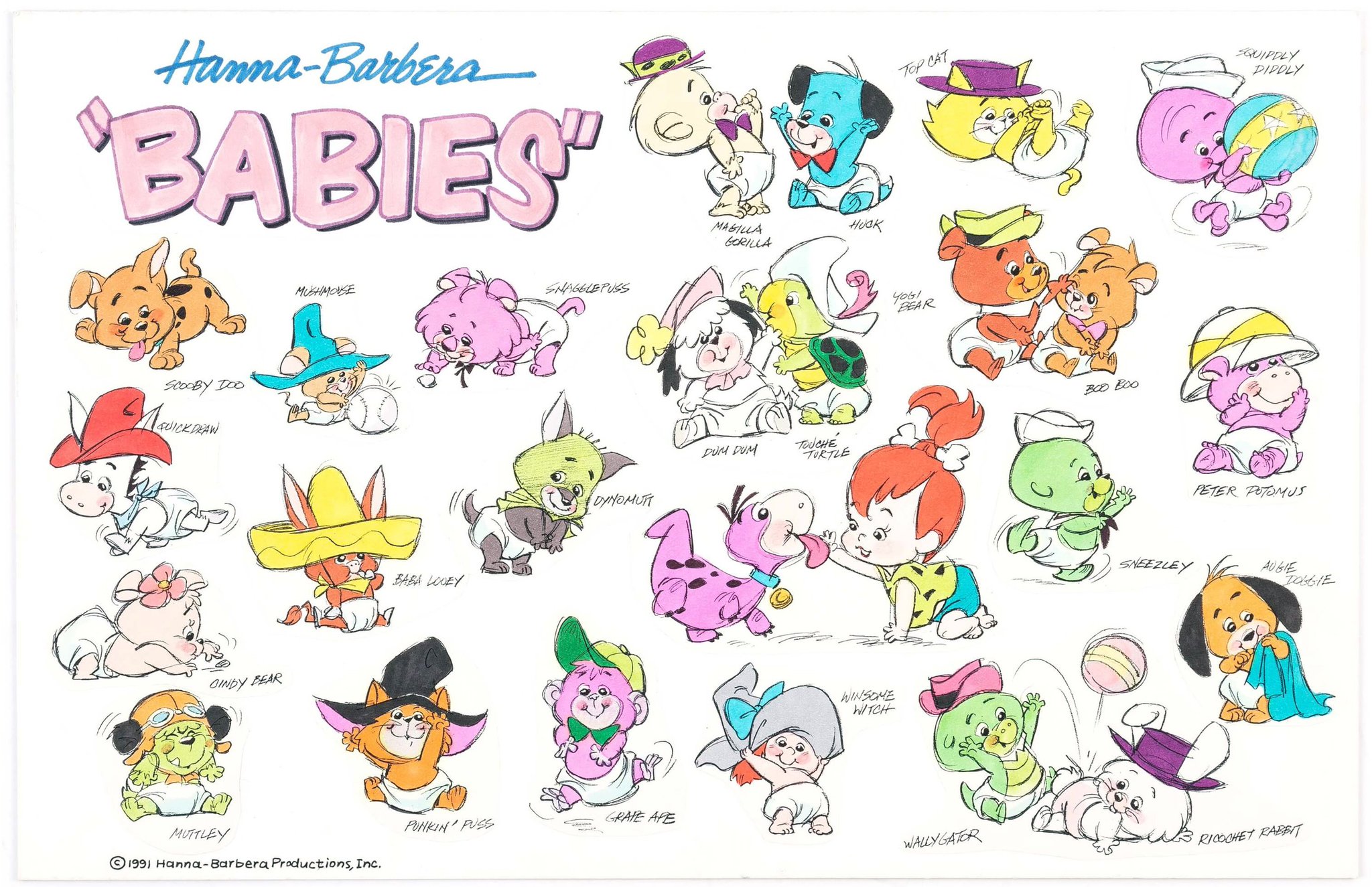 One cub pulling another's diaper and impossibly stretching it to make a tent. Maybe the other cub is trying to crawl away from the one pulling it.
