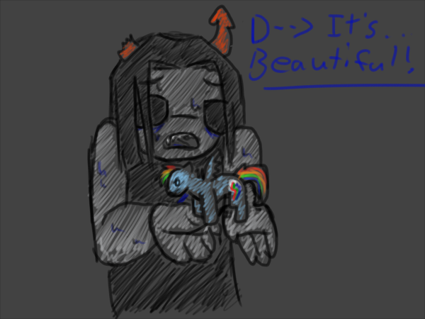 Day 5 (Today): As of approximately 4:40 AM I have officially caught up. No more staying up until balls o'clock reading Homestuck. It's finally over! Now I just get to refresh constantly for new updates :V Cascade was awesome. Like 3 people hyped it up to me. And omfg yeeeeeah that was some sick shit. I want more flashes. Anyways. Since finishing I have been listening to Umbral Ultimatum on repeat. As it is my favourite track. Jade: Enter is still probably my favourite overall flash. So awesome. That one made me shit the most bricks by far. (BEEEEEEEEEEEEEEEC!!!!1)