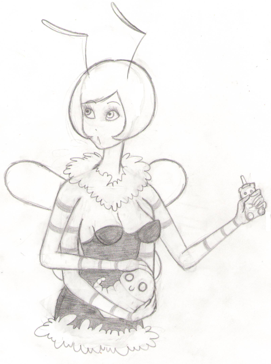 3.) Well at first she was just kind my outlet for "randomness" on this Sonic board I used to go on, then she was kind of charming oblivious and worked on cartoon physics and was still al ~random~-nified, then I did acid and she turned into this bug that was really wise and did a lot of drugs and really really loved life, and now she doesn't do drugs anymore and is just generally constantly in love with life and really cartoony. She kind of came full circle, except without all the forced randomness and violence.