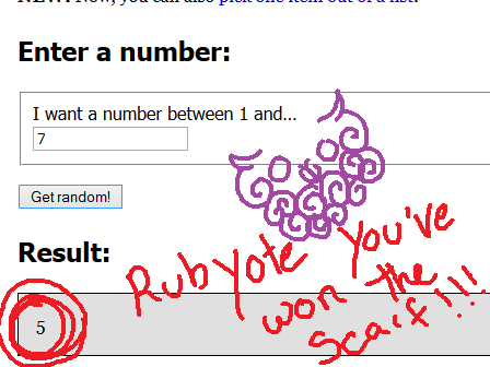 And the winner is NUMBER 5(Rubyote) For the free scarf