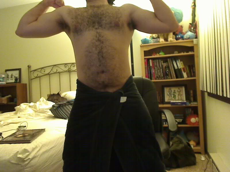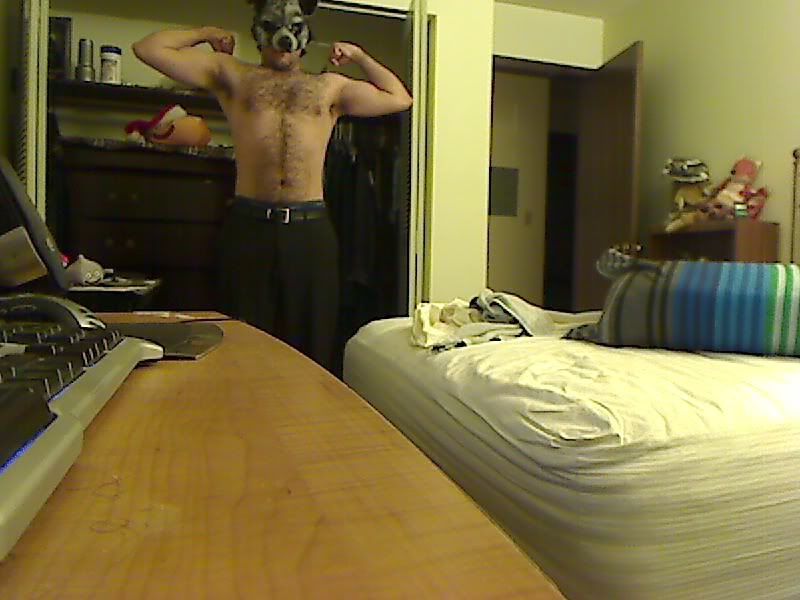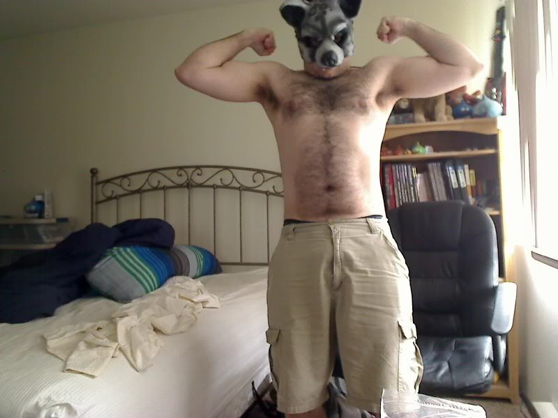 General | Posted 15 years agoWell, still trapped in overtime hell. Was supposed to only be for two weeks, and it's already been like six weeks! *grumble* But I did get to have some fun. Visited my gnolly friend and his mate in Madison a bunch last week. Went swimming, and I tried some new games like 40K. Too bad they don't live closer! Heehehe. Anywhoo, here's month # 2's progress pic of my working out. I like that the shorts I bought when I started are barely fitting now. ^^