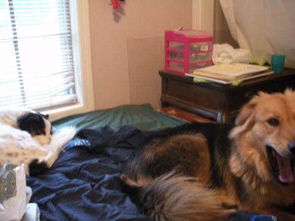 SO Maggie comes in and visits with my mom again. Ginny starts growling so Maggie starts growling. Mom gets a hold of Maggie and starts to pull her away but they go at each other again. Dad just kind of lets them fight for a minute until he's had enough and he pulls Maggie back (she has her leash on), smacks her, and scolds her and sends her to my room. Ginny just gets a tap and a "whats wrong with you??" and gets dragged to her room again while my little sister is screaming and crying. I've had to crate Maggie again until a potty break. Now she's hiding under my bed.