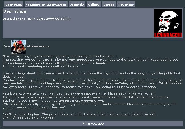 Posted 17 years agoOkay, so i get linked to this MyFursona page by this really sad furfag.