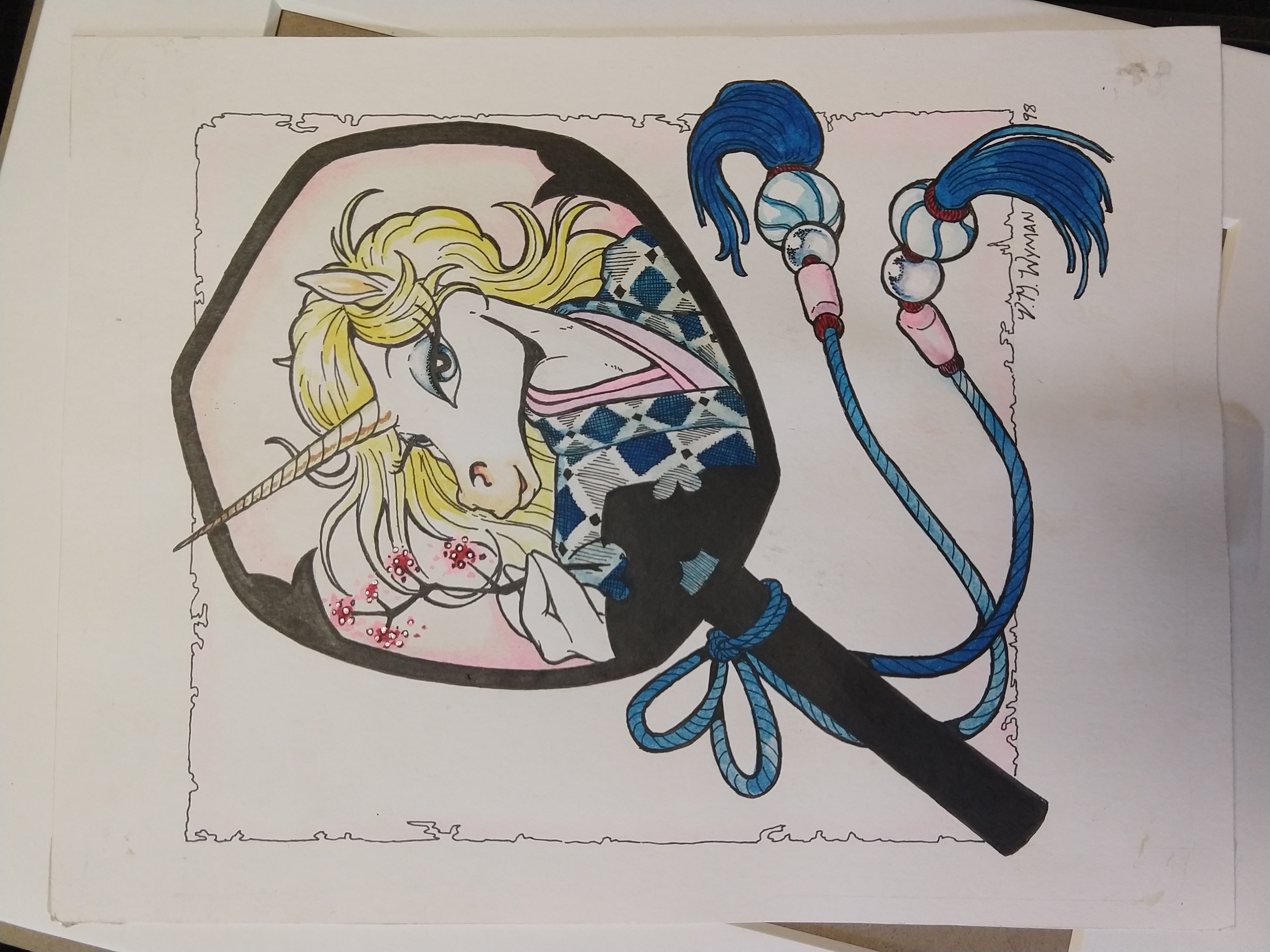 Also as it has now been made public, I would like to announce one of our raffle prizes. The amazing Slipstream has offered to donate a Vicky Wyman picture he owns to the raffle. I made sure he was absolutely sure about this and he’s agreed each time. I believe the image is an original as we found pencil lines and usually hand colored prints have an edition number on them. But beyond that we know little to nothing about the image beyond it is a picture of Alicia from Xanadu and we believe there is a companion piece out there somewhere of one of the other Xanadu characters also drawn on a fan. Please forgive the rumpled state of the image as Slipstream removed it from the frame he had it in to examine it better. http://little-tales.com/kitties/aliciafan.jpg Vicky loved cats and I believe she would appreciate her artwork going towards helping them.