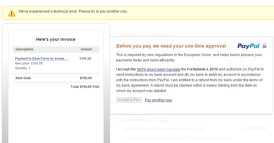 seems its only linked to invoices, if you transver it to family or friends it works fine!