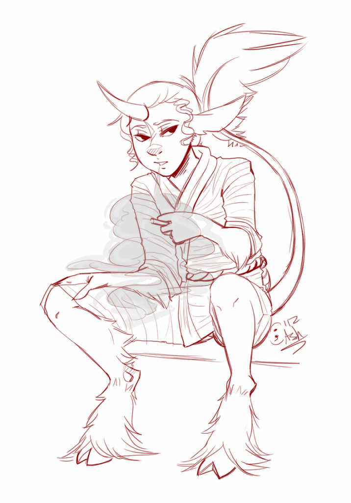 Art's moving at a slower phase then I'd like. Caught some nasty flu/bug. A couple of nights ago. Normally I'm okay since i seem to catch the same row of sickness every year around this time. But with the Vertigo and god knows what else. It's been a pain to move around. Such as simple head movements make me feel like I just got off a spinny cup ride. Not fun. :'X