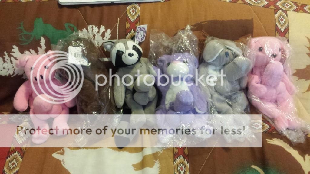 So here's the deal. I'm moving to a new apartment next month, and I was going through an old chest and found about 10 of my old Weenie Babies, all of the earliest models. Here's a picture: http://i784.photobucket.com/albums/.....psa850ed68.jpg The raccoon and the pig are the only two still being made by whatever company still does this. Everyone else are first edition Weenies. I've got about three of the purple bunnies, two of the brown dogs, two of the koalas and one of everyone else. I have zero interest in recouping any money out of this long dead venture. But I thought someone might want one, and for the cost of perhaps $3 or $4 shipping to wherever you live, we could make an equal cost deal. I plan on getting rid of them in a month. Perhaps give them to Goodwill. I'm sure they'd love to sell them. :D