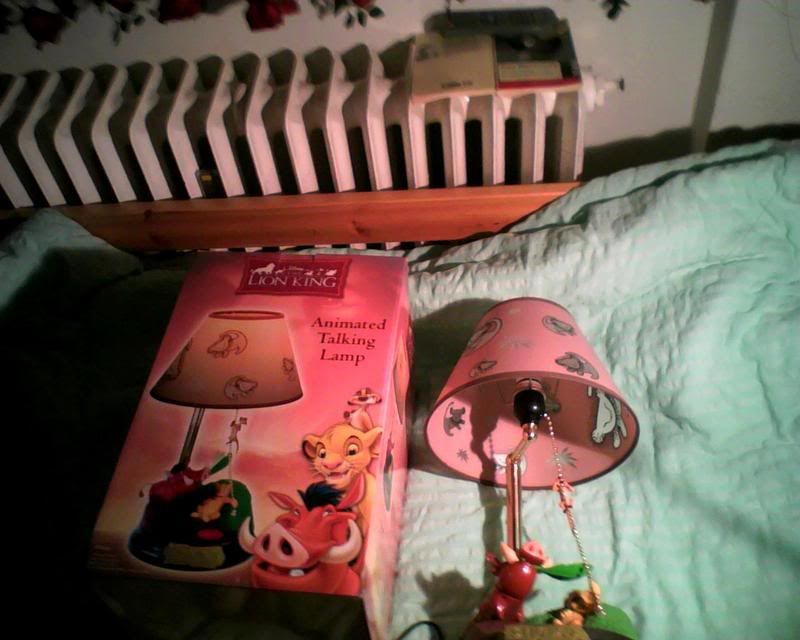 - sings hakuna matata (voices of ernie sabella and nathan lane) when switched on or off.. characters move