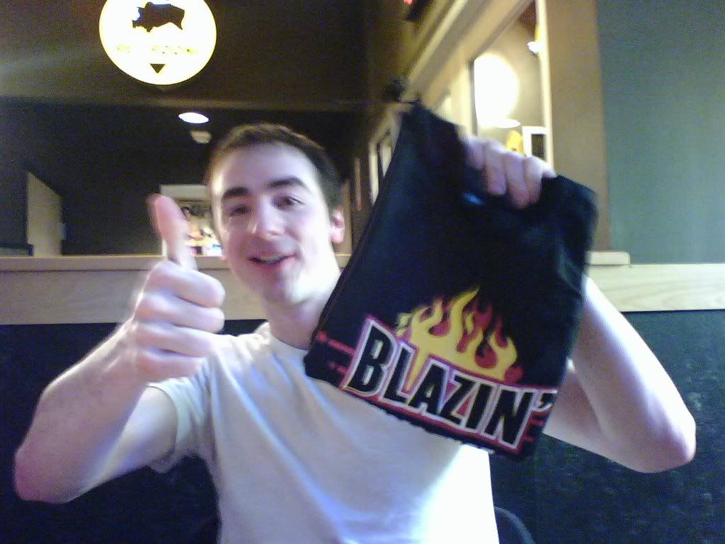 Posted 18 years agoI have always considered myself reasonably smart, and by that I mean I was always able to avoid peer pressure of any sort. I just said no, and that was that, I had no reason to do something I didn't want to just for benefit of someone else. Apparently, having a girlfriend makes you stupid, and two weekends ago I fell for the pressure. Perhaps I was just showing off, perhaps I felt luck was on my side, or perhaps being in presence of our desire just makes us certifiable mentally challenged. Whatever the case may be, I was somehow conned into participating in the Buffalo Wild Wings, Blazing wing challenge. Whats the Blazing wing challenge you say? Well around here we have a restaurant called buffalo wild wings, and it serves wings with all sorts of sauces, one of the sauces is very hot, we are talking chemically hot. Its the kind of hot that absolutely no one in their right mind eats for the taste, since any taste their was, disappears as your taste buds burn off. Don't look at me however, my good friends Aran and Rob confidently talked us all into giving it a shot, even though I mostly despise anything spicy. I tried to pansy out, especially when they brought out the waivers you needed to sign (apparently a few people have had seizures while attempting to complete the challenge) Anyway my lovely mate, convinced me to sign the sheet and agreed to be my witness. So then the wings came out, the rules are as follows, you must eat 12 of the blazing wings, clean to the bone, in under 6 minutes, no beverages, no additional foods, and no hope. Not to be undone by my friends I dived right in, I focused my self and tried to turn my self off from the pain. Apparently my oh so cockey friends didn't bring their a game, Aran finished 6 wings before giving up and Rob finished 4 wings before giving up. I stupidly kept going. I actually had a bit of a strategy in the way I ate the wings but I'll spare you the nitty gritty details. Anyway I one the challenge, winning a t-shirt, my picture on the wall, and bragging rights against my friends. Let me tell you though, the hard part was not so much the Blazing Wing Challenge, but rather the Blazing Bathroom Challenge the day after...