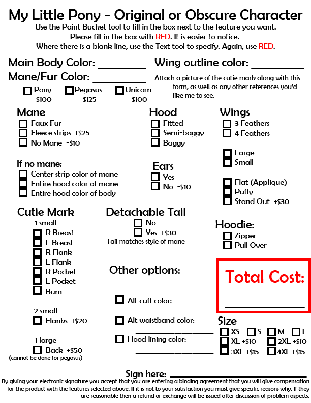 I still want to make a hoodie to show off the puffy style wings used for pegasus ponies. This hoodie will be put up for sale immediately. It will be available here for 1 week for anyone who wants it and can pay (or can provide a definite way to pay in the near future) and if not claimed/purchased then will be available on my Etsy shop.