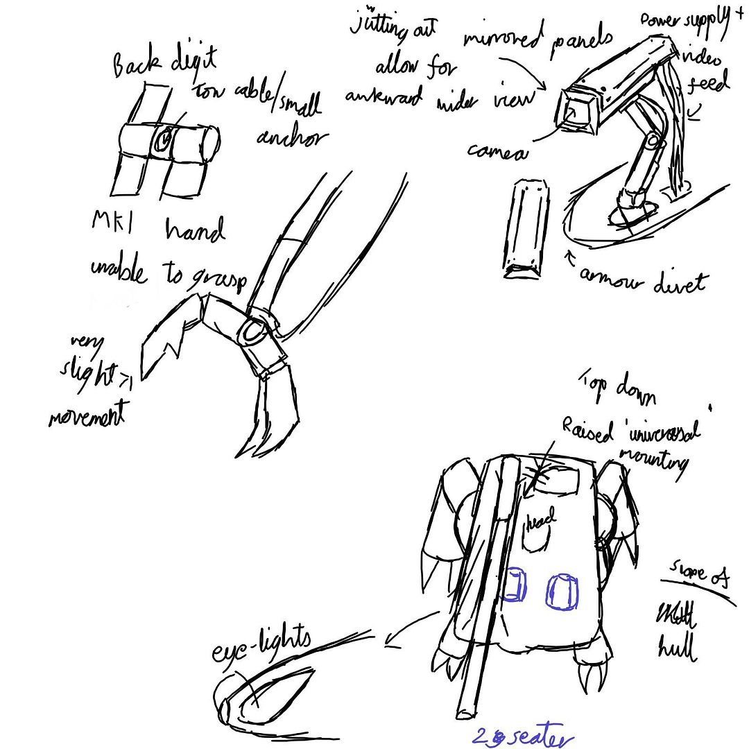 Though hiccups there being I don't really know any available tecchy artist that could help me build this up and refine my hideous doodles into something more... mechanically adorable. So you know, tell a friend.