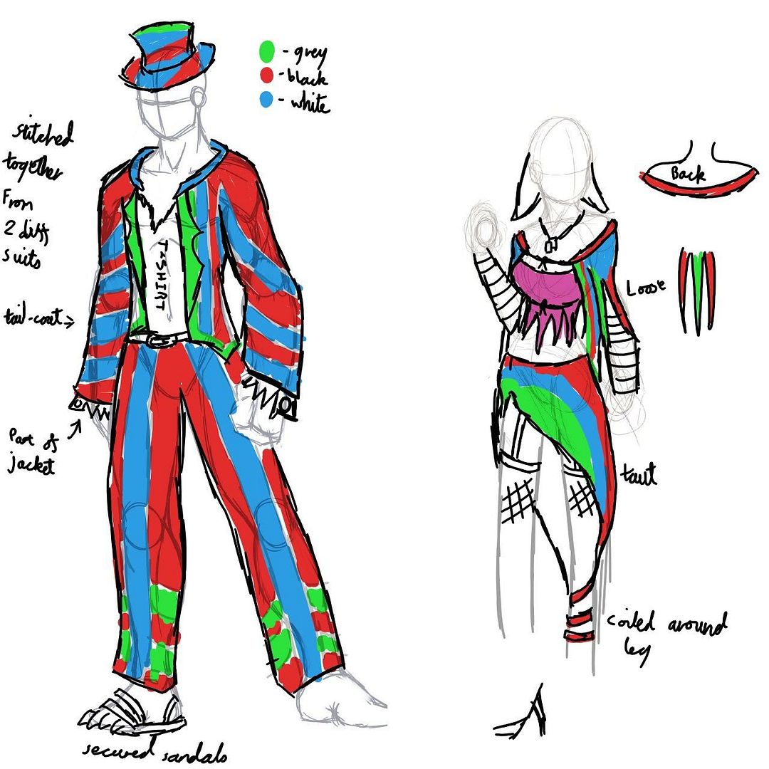 Such as Formal outfits for Tom and Rags, the performing couple.