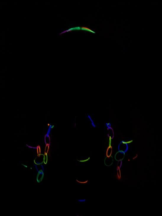 We've got two of me after getting ready for the Saturday night dance, with 60 glowsticks on my body: