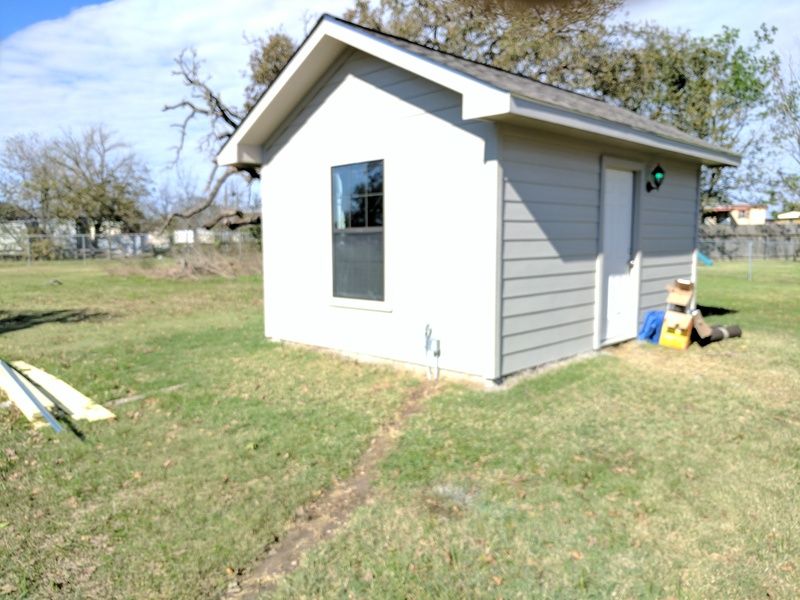 It was april of last year when my friend finally did something about the storage I was promised when I got my house that I would have a garage. Well that was many years ago. In may I got woken up to the sound of a digger and looked out back to see them scraping the ground and then setting up a form to pour concrete.When they left I realized that it was too small for a garage. I called and found out he was building me a shed. I watched them come and pour the slab and insert the bolts in it for the wood to bolt to the slab. I was at least happy that I would have storage I so desperately needed.