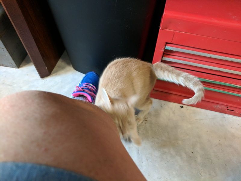 General | Posted 8 years agoWell Its been a while now that I have been feeding a stray cat at my friends place. Mommy kitty. Showed up all thin and straggly back at the end of winter. I began to feed her and we also noticed that there were two more cats around. Soon Mommy Kitty began to get big and we were more religions about feeding her. Every two days we would arrive and I would do things and also put out a bowl of food for her to eat. She was always skiddish and I never could touch her.