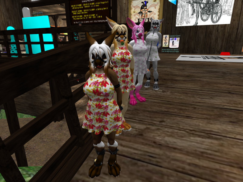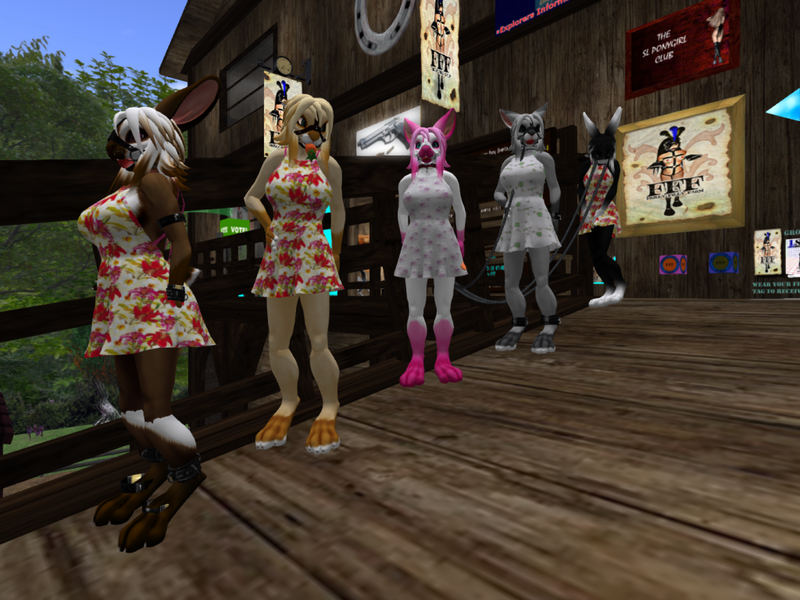 I needed more training and soon My guardian Queen Victoria or Queen V as she is called in SL took me around to various stables trying to find me a trainer. I soon realized that the PonyGirl world was not at all Furry friendly. From finding no one to even being told "We do not want Furry's here by a Recognized stable. I was disappointed and a tad heartbroken. After a couple of days she took me around again and avoided the Non Furry stable. I still only go there for competitions. Our last stop was Wildfire. There we met a group of Trainers and a Stable mistress that had just gotten back from a Polo match. She said they were tired but asked me to come back the next night. That night I did and I became a wildfire pony.