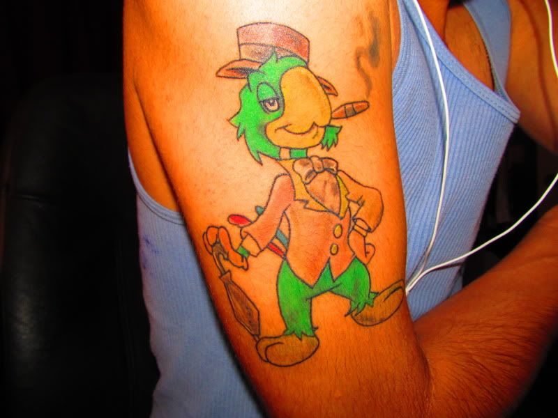 General | Posted 15 years agoI just got a wild hair tonight and decided to get my third tattoo done! Remember that piece I uploaded earlier today of José Carioca?! Yep, I got that on my right arm! Naturally the color pigments look different on my skin. Plus it's brand new at this time so it's seeping into my pores and the colors will come out later on. Take a look at my "Ele E Carioca" piece.