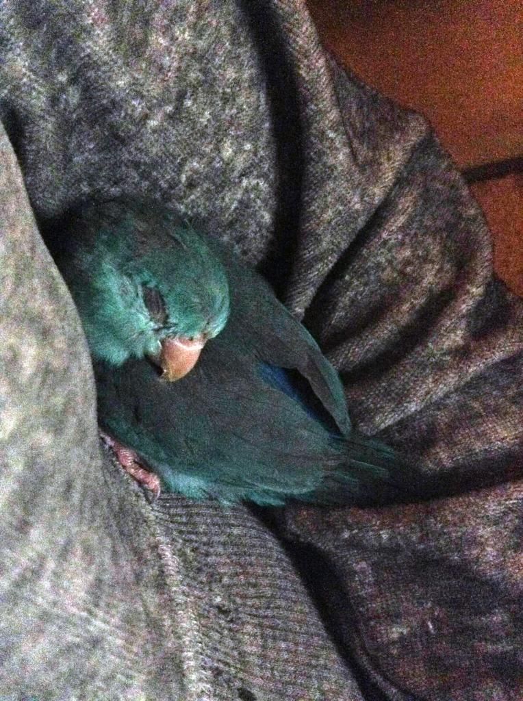 ( Closer photo of Luna. No, she isn't a big parrot. She is 4.5 inches long so she is tiny. Haha! <3 )