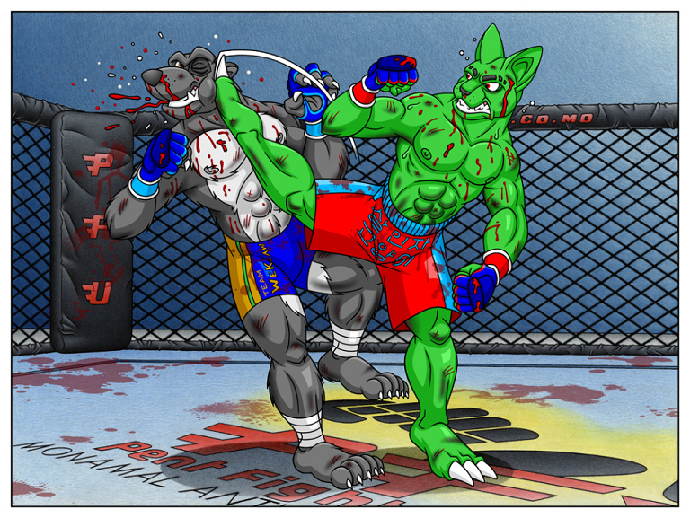 So i'm planning to make a commission of Zapedy standing in a an MMA cage looking up roaring to the sky