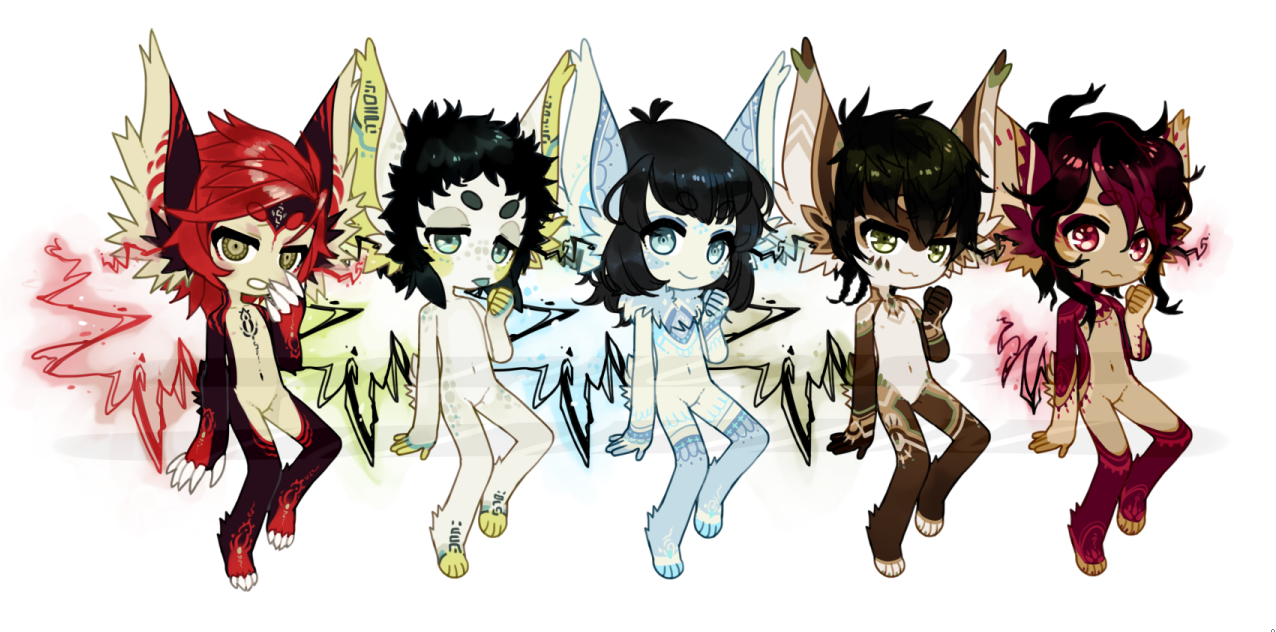 Please make sure to follow the trait canons! E.G., no colored lightening currents, hair can be "dyed' but should naturally be primarily black, no flop ears, etc.