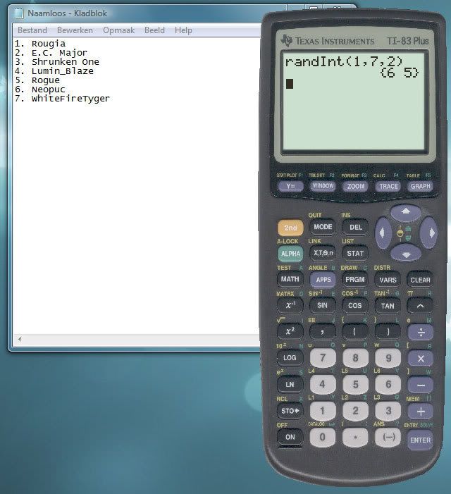 4. And here comes the tricky part: I will have my calculator randomly pick a number from the list. And that is the person who can ask me for a commission!