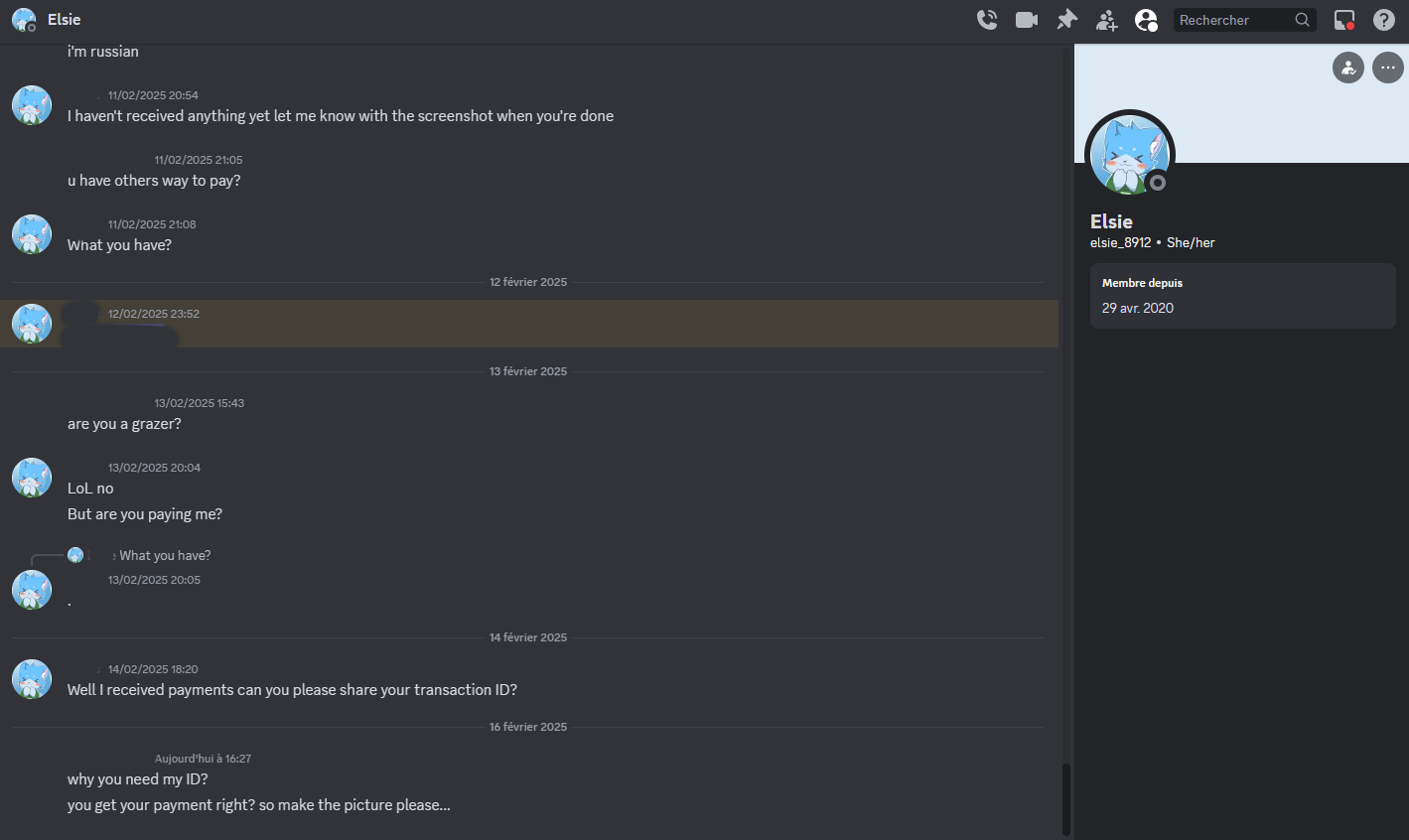 and above all, no matter if it's to join a discord server, or/and to "validate" a payment, do not send your identity card! it's really dangerous because these individuals can usurp your identity.