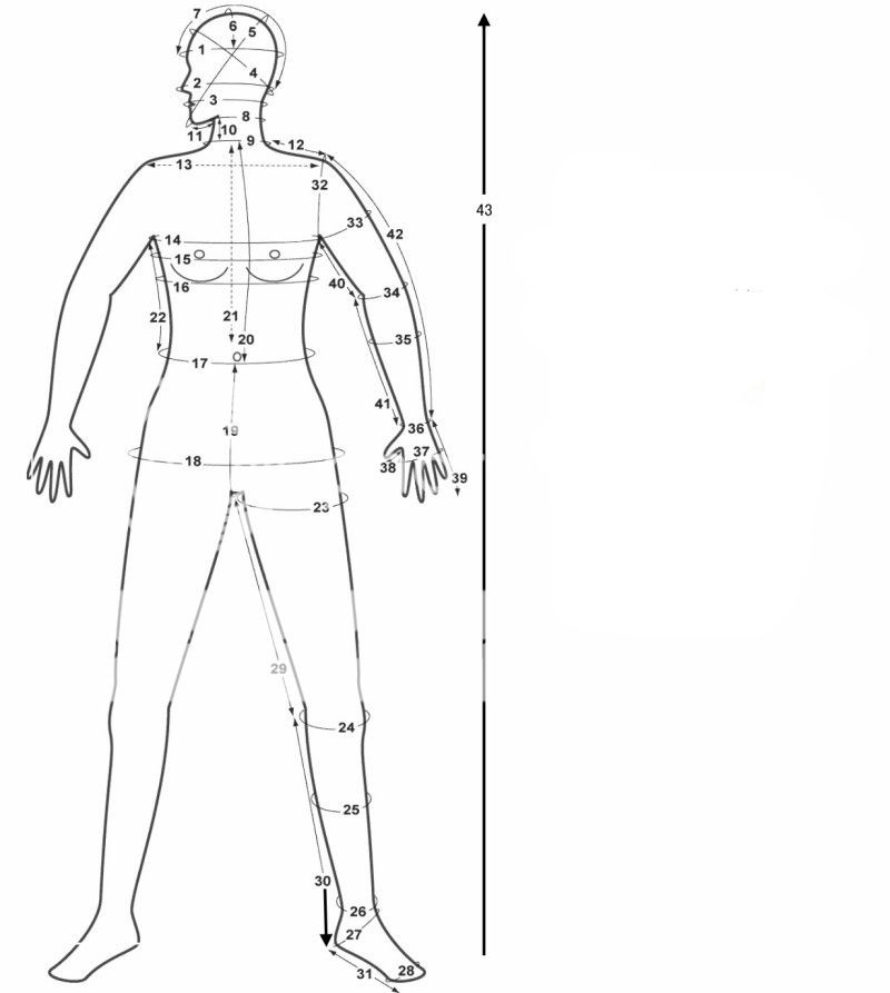 •Partials – I need the head measurements, a hand tracing (a hand turkey if you will), and shoe size. In addition, if you are getting sleeves,I need circumference of the upper and lower part of your arm along with length from shoulder to wrist.