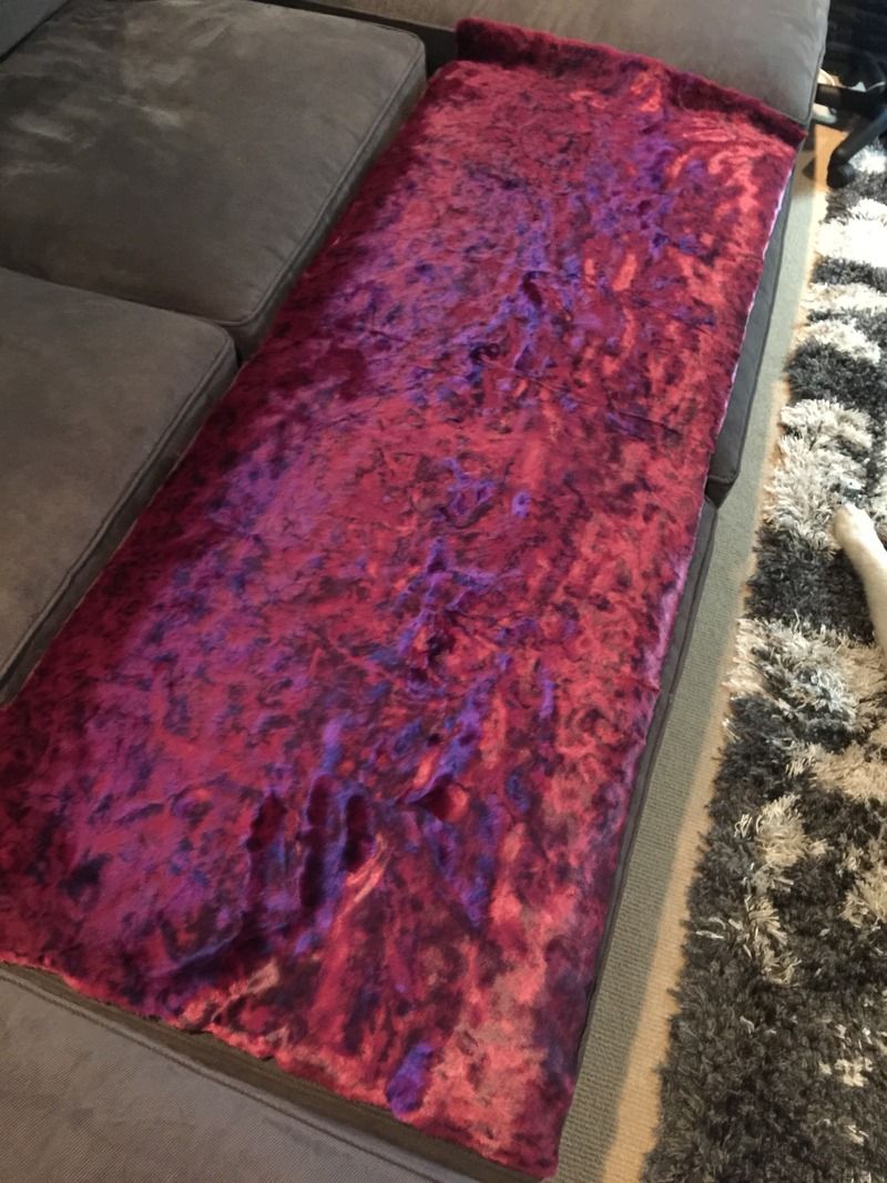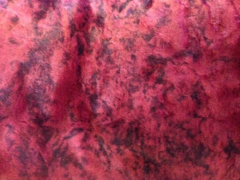 64" x 25" (about 2/3 yard) mottled plum/raspberry seal. Slight wrinkling. VERY soft, has a sheen to it. Great quality. $10