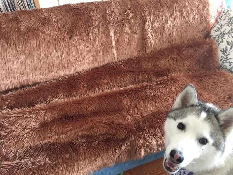 Almost 2 yards CR's Crafts rust fox teddy. Good condition. 60" x 60" uncut, plus about 34" x 16". $30