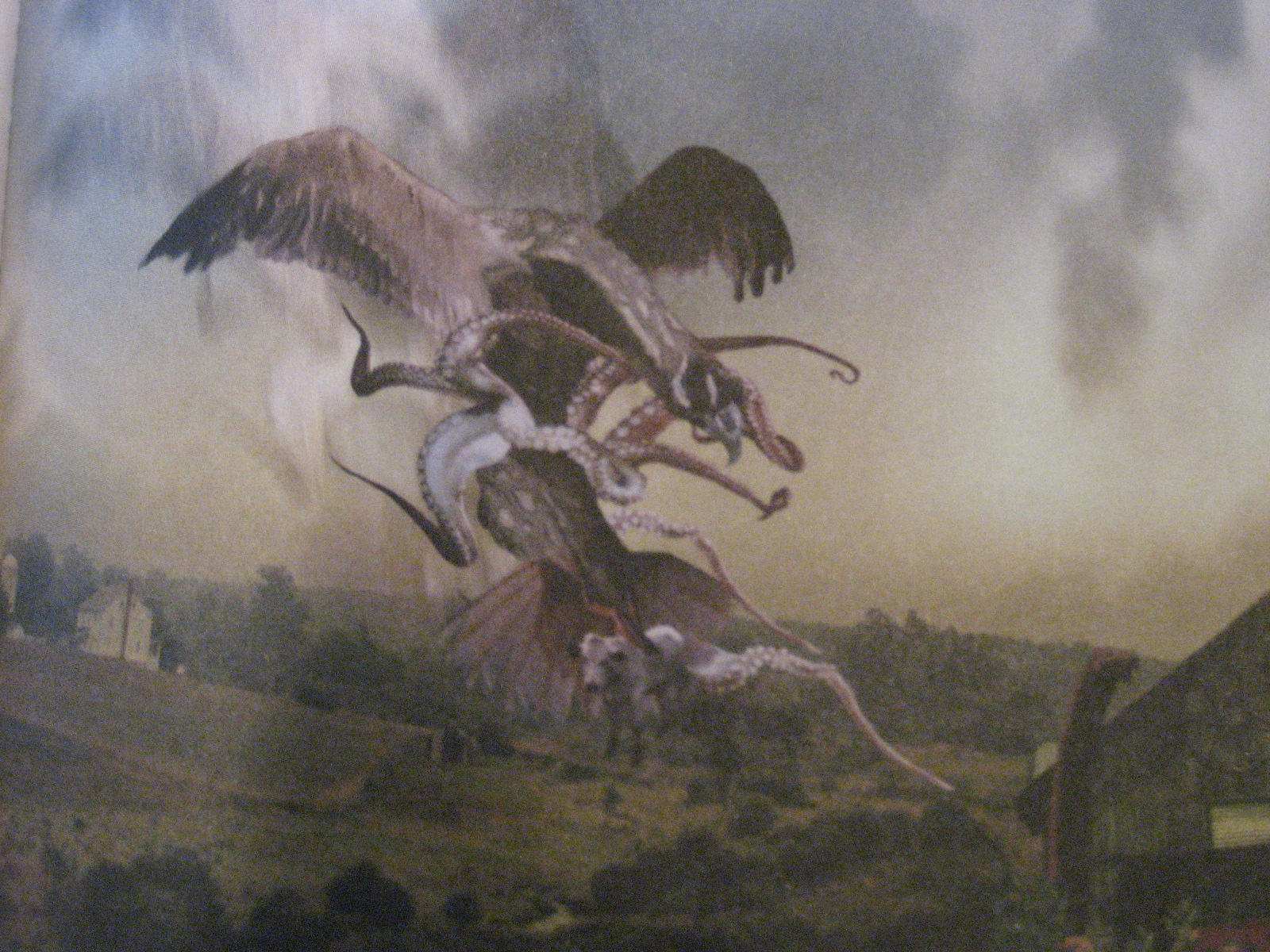 Snallygaster (a cryptid/legend from my home town) based OC *example art of Snallygaster* X X Basically a bird/dragon tentacle monster thing.